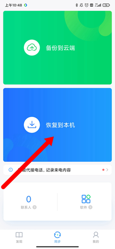 若本机通讯录为空,一键同步会将云端通讯录全部恢复到手机;