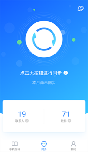 在主界面点击圆形主按钮,即可将手机通讯录备份至网络。