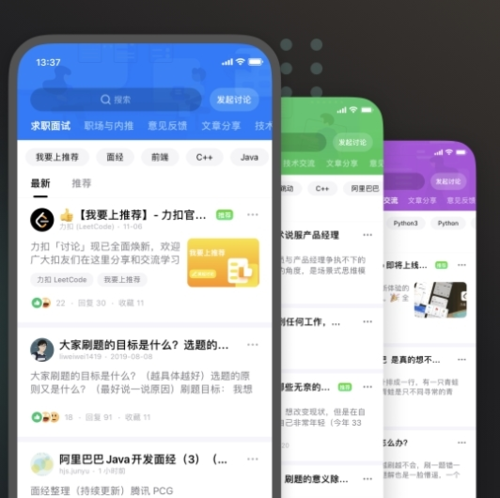 看讨论功能:设有求职经验、职场心得、内推信息与技术学习讨论区,社区用户可互相解答疑问。