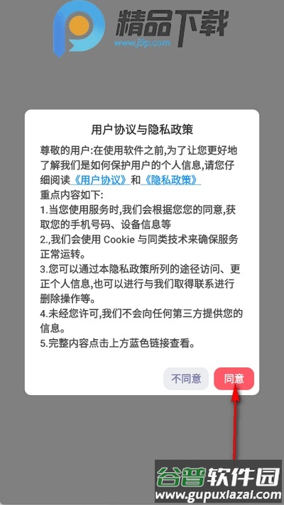 1、启动软件后请阅读并同意相关的用户协议与隐私政策;