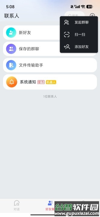 3、您可以通过搜索账号或使用扫一扫功能来添加新的联系人。