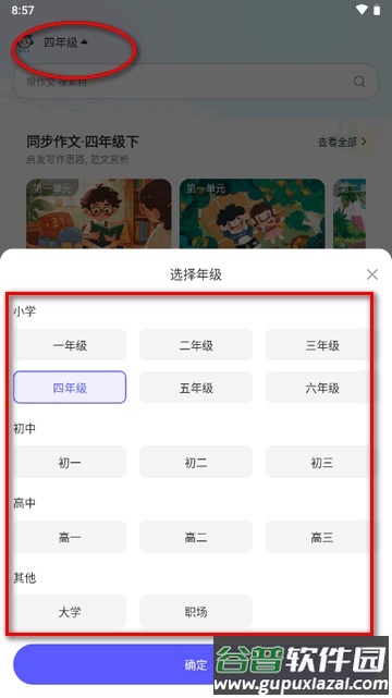5、进入后可根据自身需要选择对应年级。