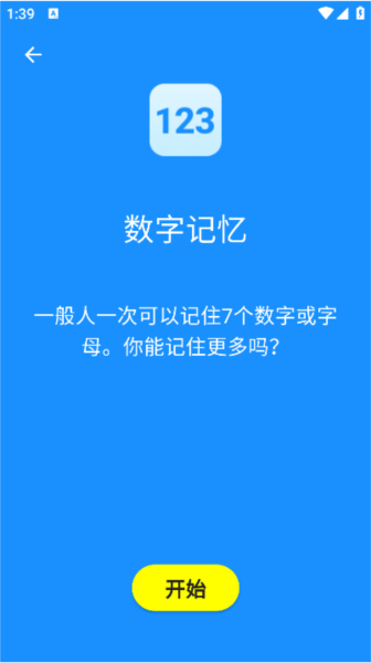 选择任意项目开始测试,例如点击进入数字记忆测试。
