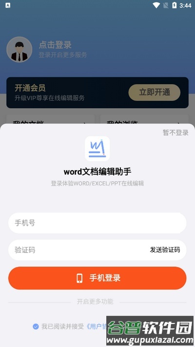 3、输入手机号和验证码即可登录。
