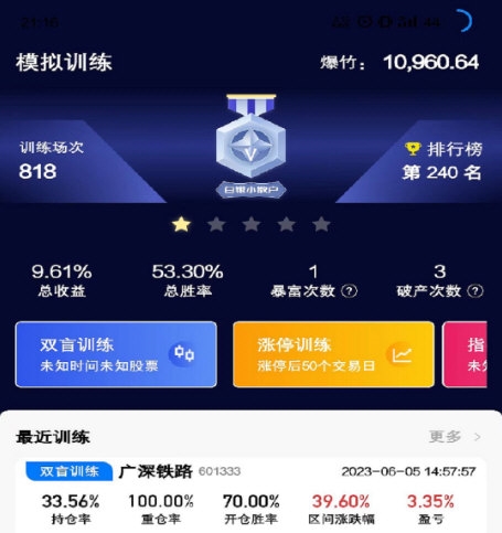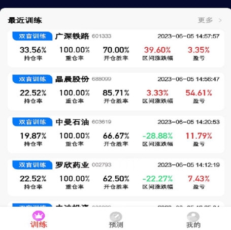3、训练统计:自动统计训练次数与收益数据,生成投资排行,掌握自身表现;