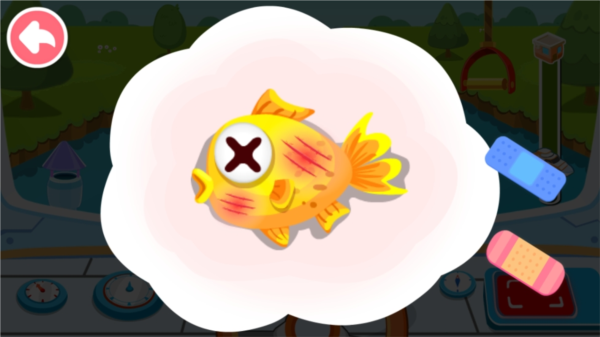 3、清理过程中可能会发现受伤的小鱼,这时要用伤口贴为它进行治疗包扎。