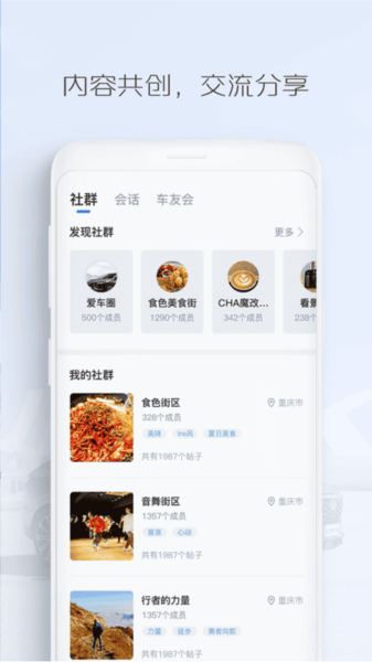 同步更新长安会员俱乐部的最新活动,用户可在线参与或报名线下活动,并分享给好友。