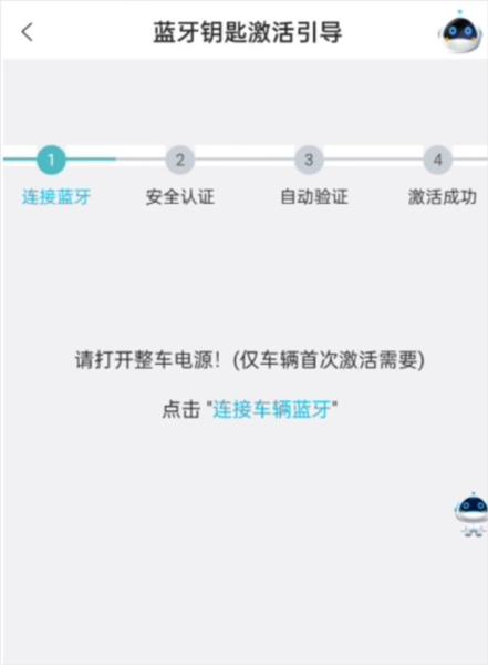 4、保持人在车内并启动车辆电源,点击连接车辆蓝牙。