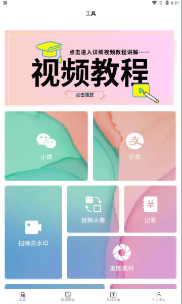 3、工具区内设有详细视频教程;软件已为超两万微商用户提供服务,能快速制作发圈素材,深受各类微商团队欢迎。