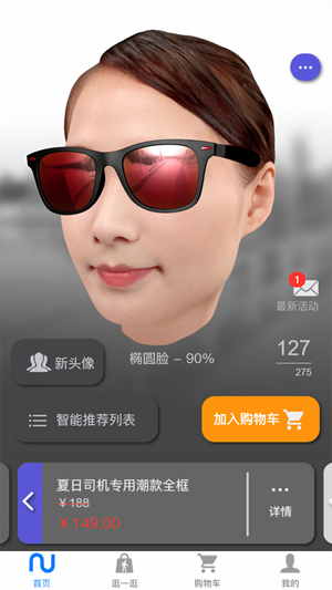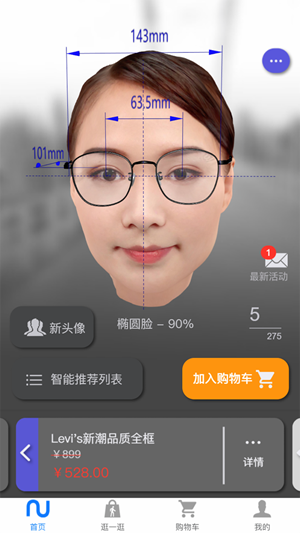 系统依据三维头像智能辨识用户脸型,进而推荐符合个人气质的眼镜款式。
