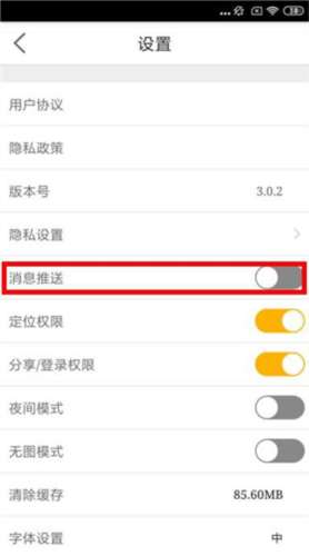 3、进入设置页面后,将【消息推送】选项右侧的开关按钮关闭,使其变为灰色状态即可。