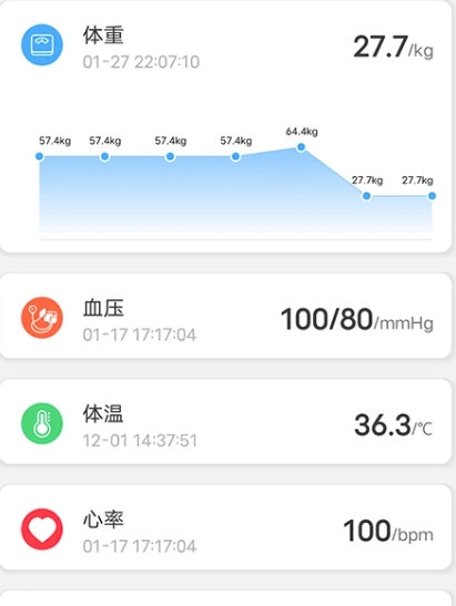 4、数据变化:支持身体数据的纵向对比,清晰呈现健康指标的变化趋势;