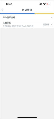 4、进入后点击“密码管理”,找到“手势密码”开关并将其关闭即可。