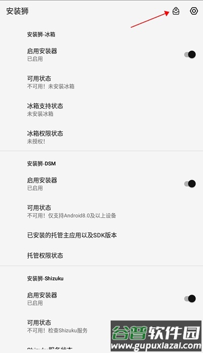 1、启动应用后,点击界面右上角的安装器标识。