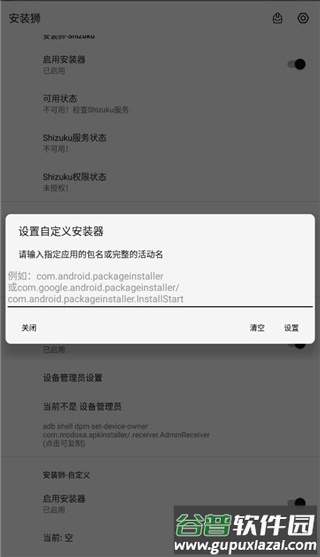 5、用户也可自定义安装器,输入具体应用的包名或完整活动名称即可实现。
