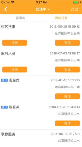 报事处理:在app内接收并处理小区业主的报事请求;