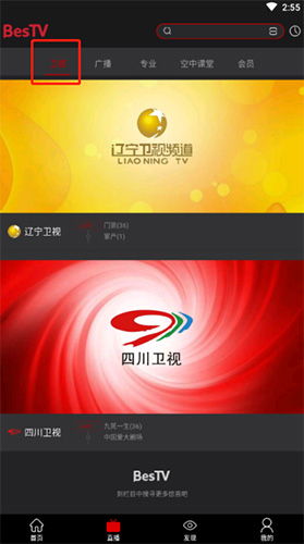 2、在直播页面顶部可见卫视、广播、专业、空中课堂等分类,点击卫视即可观看电视直播,在手机端体验看电视的乐趣。
