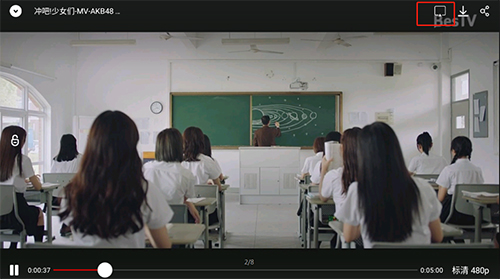 2、点击全屏后界面右上角出现的投屏图标。
