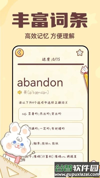 3、每个单词均配有详细释义与标准发音解析,帮助用户准确理解与掌握。