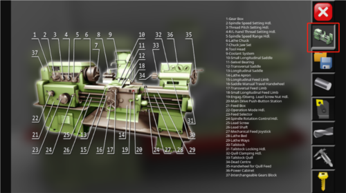 1、启动软件后进入主界面,点击【小车床】图标可查看机床各部件结构;