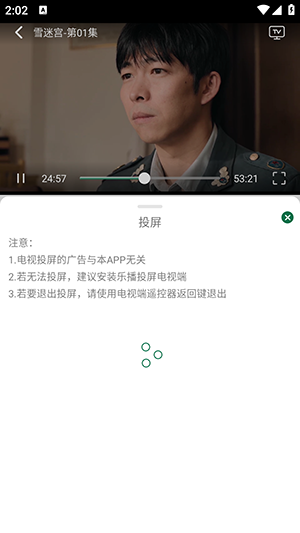 5、在播放页面的右上角可以看到一个电视形状的图标,点击它即可搜索附近的投屏设备。