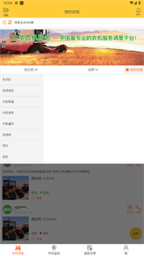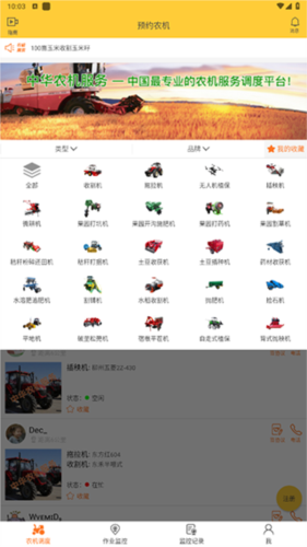 农机调度模块展示本地闲置农机资源,为农户寻找合适设备提供便利;
