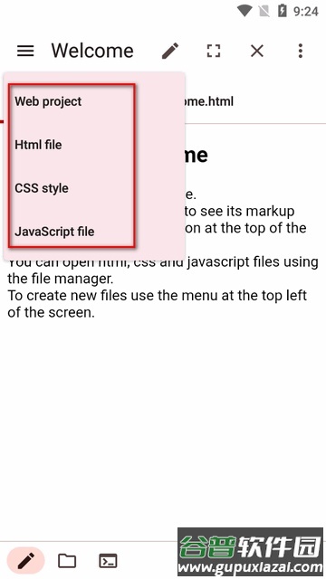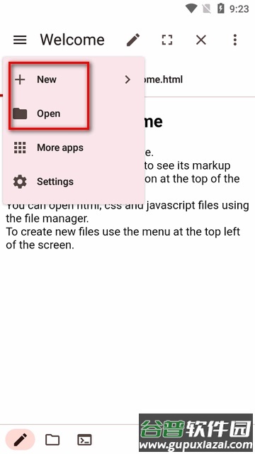 2. 选择New以新建项目,或选择Open打开手机已有文件。