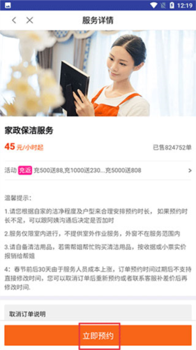 预约流程简单:预约家政服务像预约网约车一样方便快捷,提升了使用感受。