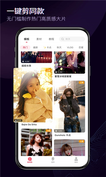 主要面向30秒以内的超短视频创作,聚焦最精彩的片段;只要你善于捕捉亮点,随时可以成为剪辑高手。