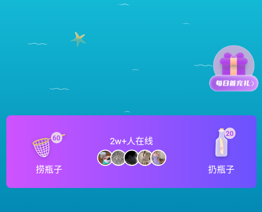 1. 漂流瓶:投掷瓶子倾诉心情,捡拾瓶子匿名交友;