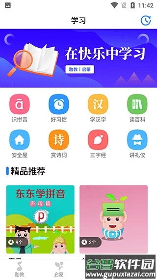 3、切换到学习区域,能够接触诗词赏析、三字经、礼仪讲解和习惯培养等知识;