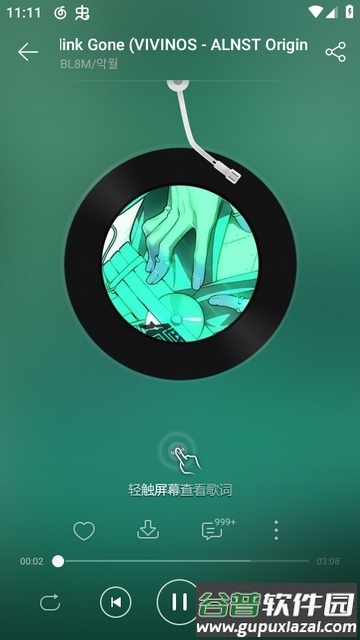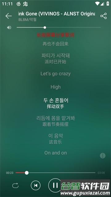 6、播放时点击屏幕中央可以显示歌词,长按歌词则能进行分享操作。