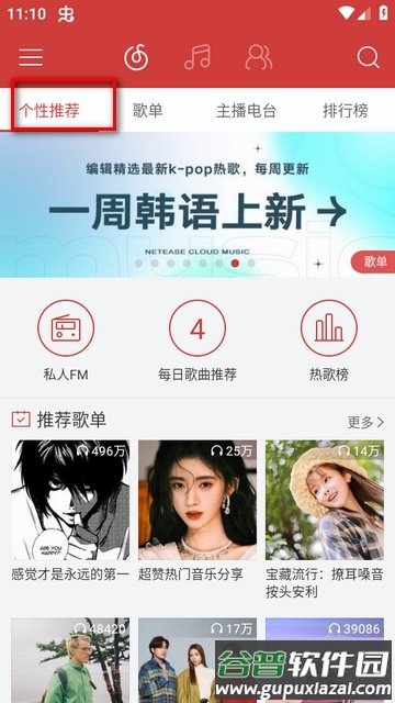 2、启动应用后,可以看到推荐的播放歌单,从中选择一个你喜欢的歌单。