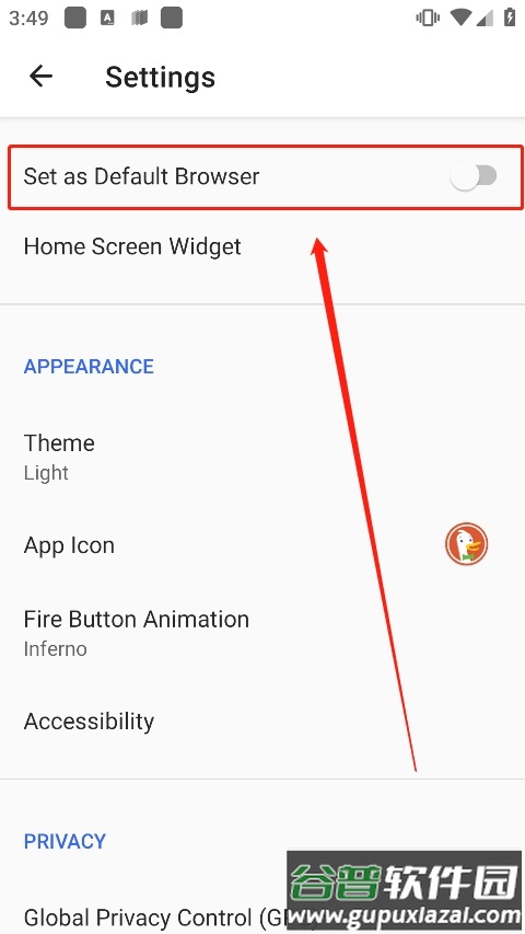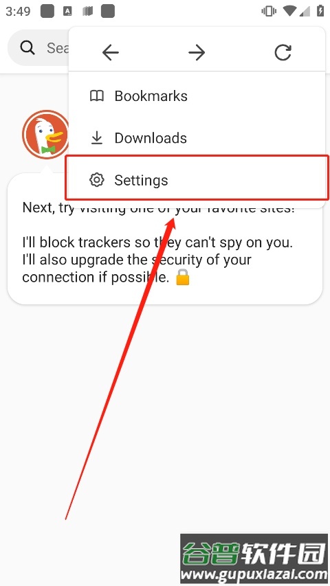 1、启动duckduckgo应用,点击界面右上角的设置图标。