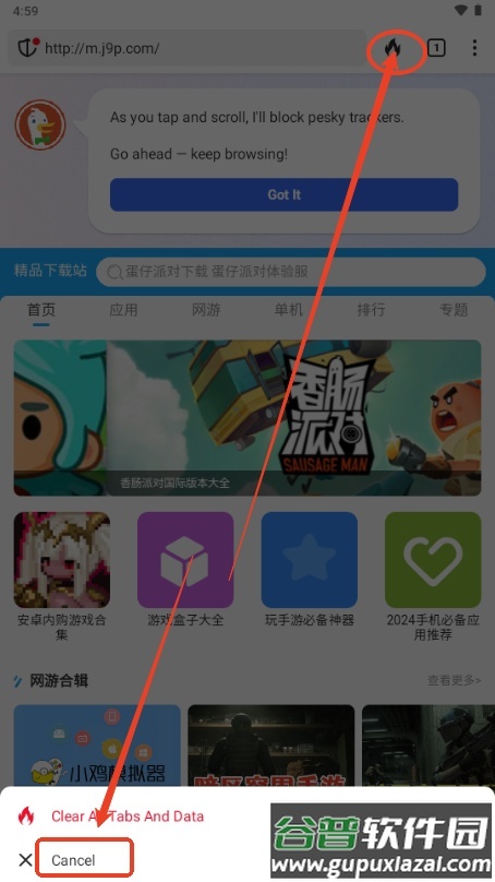 5、浏览完一个网页后,可以点击火把形状的按钮,一键清除所有个人访问数据。