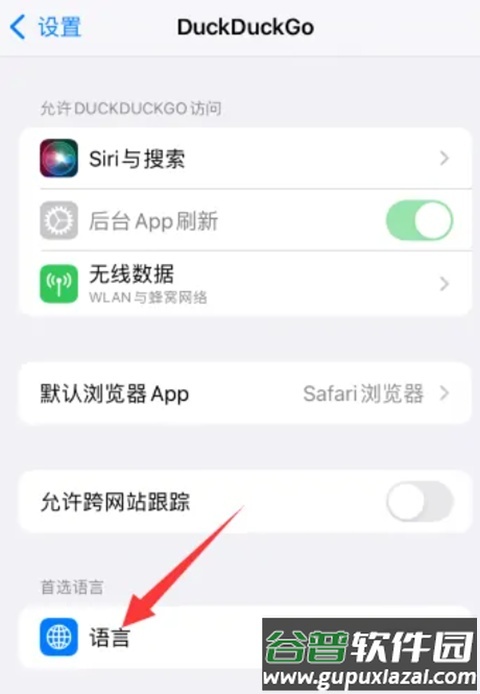 3、系统将跳转到手机设置中关于duckduckgo的专项管理界面,点击其中的“语言”选项。