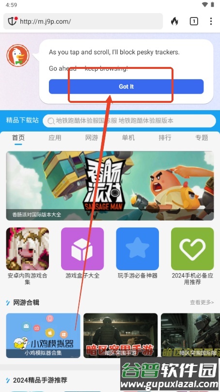 2、接下来可以在顶部的搜索栏输入网址,尝试访问你常去的网站;DuckDuckGo会启动跟踪器屏蔽功能,尽可能提升访问过程的安全性。