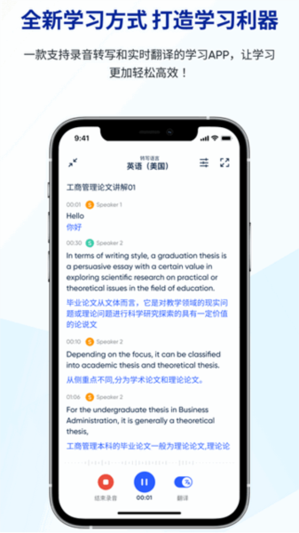 软件集成实时翻译与录音功能,用户点击开始录音按钮即可录制待翻译内容;录音完成后,系统自动将语音转为文字并进行翻译,便于学习与交流。软件支持高品质音频录制,确保获取的语音清晰可辨。用户可按需导出双语逐字稿,方便后续温习与整理。智能转写功能可将录制语音快速转换为文本,减少重复收听耗时。软件每月提供180分钟免费录音转写时长,让用户在享受优质服务的同时合理控制成本。后续版本将持续更新实用功能,协助用户高效应对各类学习任务。
