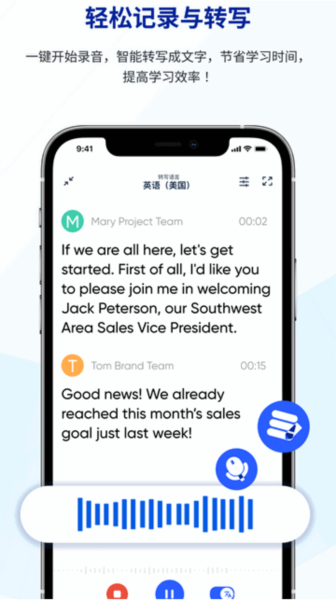 * 搜索回放:全局快速查找任意词句,按自定义速度回放音频,高效复习内容。