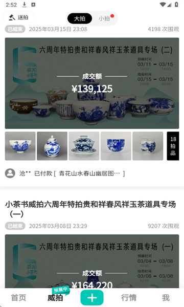 小茶书旗下的威拍拍卖始于2019年,运营五年多以来,累计成交超过五千件老贵早春瓷器、三千余件景德镇当代名窑瓷器,以及数百件普洱茶、老酒、字画与威士忌。平台已为近十万名玩家提供服务,逐渐成长为口碑良好的专业拍卖社区。