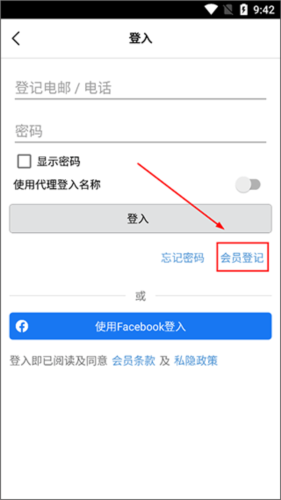 1、打开28Hse香港屋网app,点击【会员登记】开始注册账号;