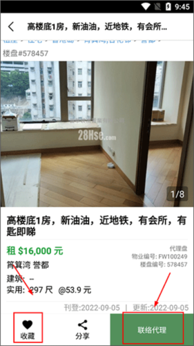 5、看到满意房源可点击查看详细信息,若感兴趣可直接联系房屋代理沟通,或收藏至个人收藏夹,便于后续比较与查看。