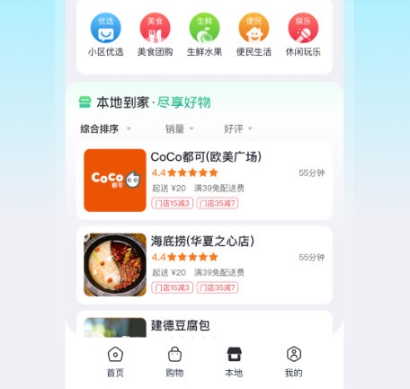 4、本地生活:授权定位后,可切换城市并查找附近各类商家与服务;