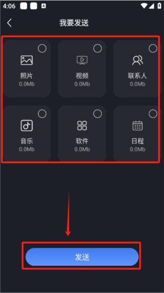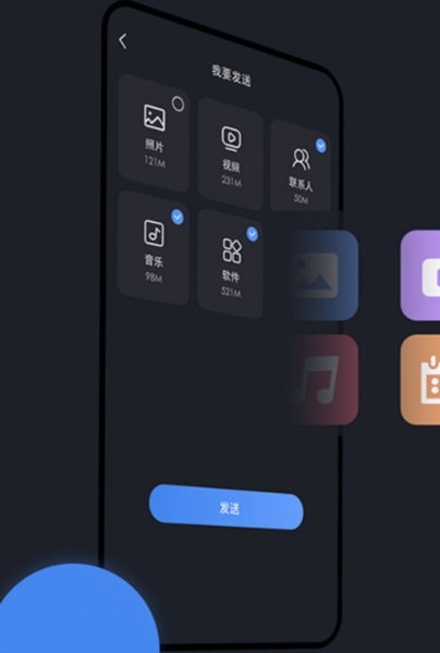 2、点击发送后,勾选需要传输的文件,确认后即可开始发送。