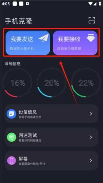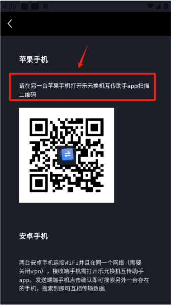 1、打开乐元换机互传助手,选择发送或接收功能。