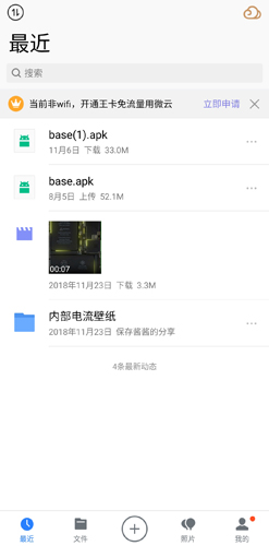 腾讯微云网盘手机版可视为QQ的专属云存储空间,其功能与百度网盘等同类产品相似。云空间内的文件在多设备间互通,无论在手机或电脑上传,均可随时下载共享。