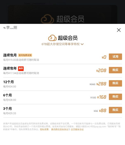 腾讯微云网盘近期有限时活动,开通超级会员连续包月可享受首月免费体验,且可随时取消。登录后APP通常会直接弹出相关开通提示。