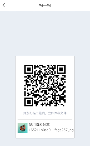 首先在微云内将文件以二维码形式分享出去,操作步骤与普通分享类似;生成二维码后,建议使用手机截屏保存图片。