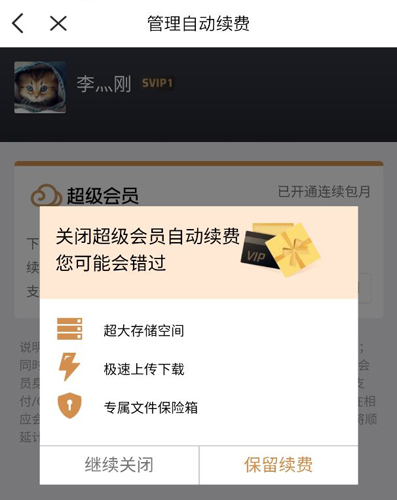 进入后选择关闭自动续费选项,根据提示确认关闭,并完成相关滑块操作即可。