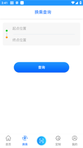 2、选择“换乘”功能,输入需要查询的起点与终点信息。